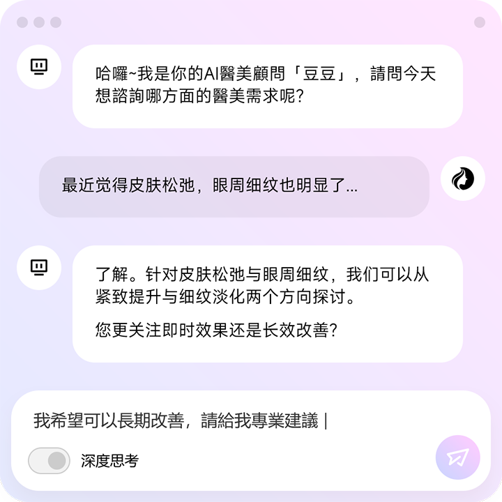無論是想改善特定肌膚問題,還是追求整體提升,只需簡單描述,AI助手便能理解核心訴求。